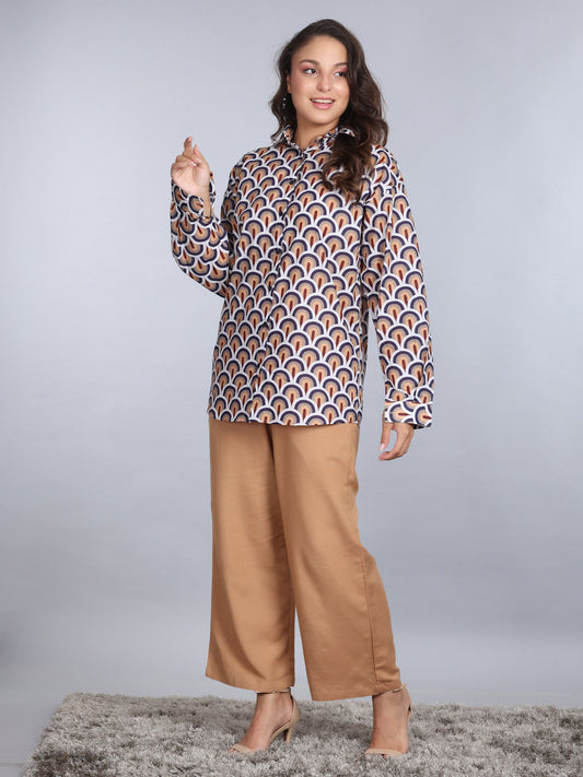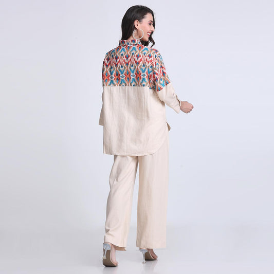 PINKS Coord Set Cotton Printed Shirt and Linen Trouser