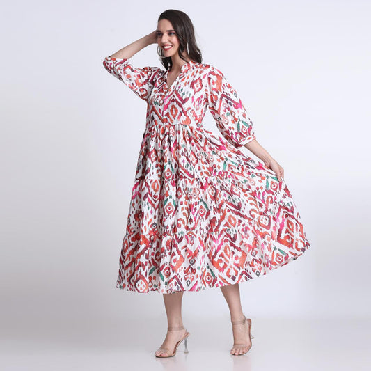 PINKS Coord Set Cotton Printed Tunic Linen Flared Pants